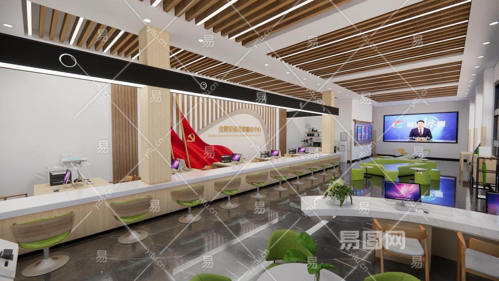 新中式办事大厅 便民服务中心 社区大堂 社区大厅 街道办事处