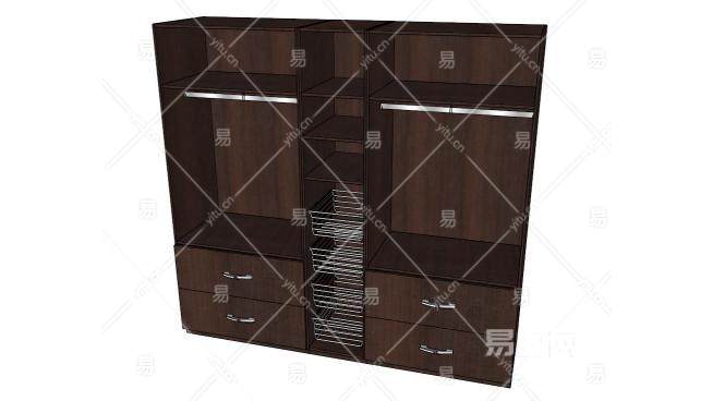 实木开放式衣柜SU模型下载_sketchup草图大师SKP模型