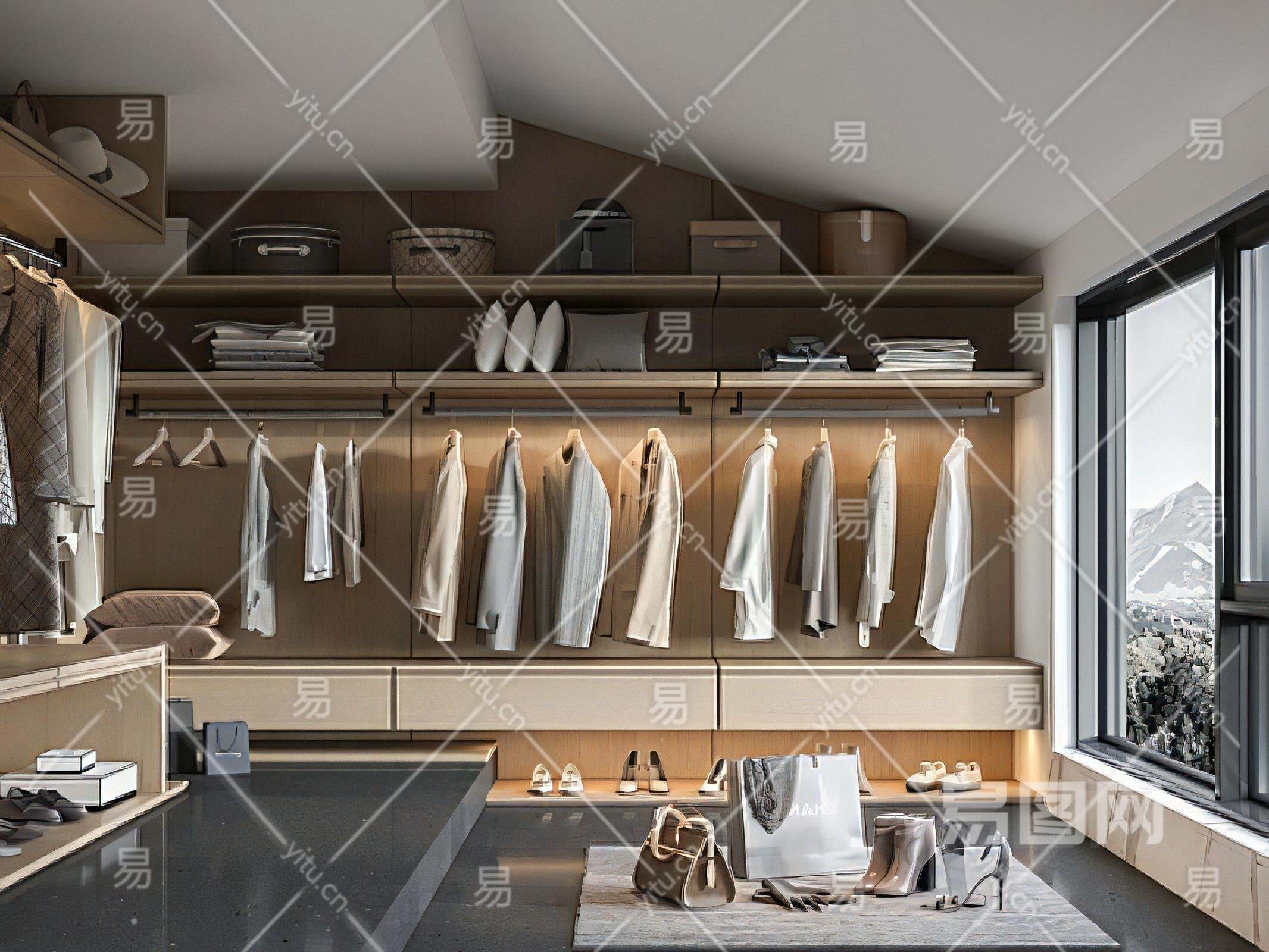 现代衣帽间试衣间化妆间衣柜置物架服饰展示架展柜