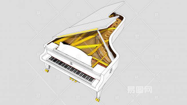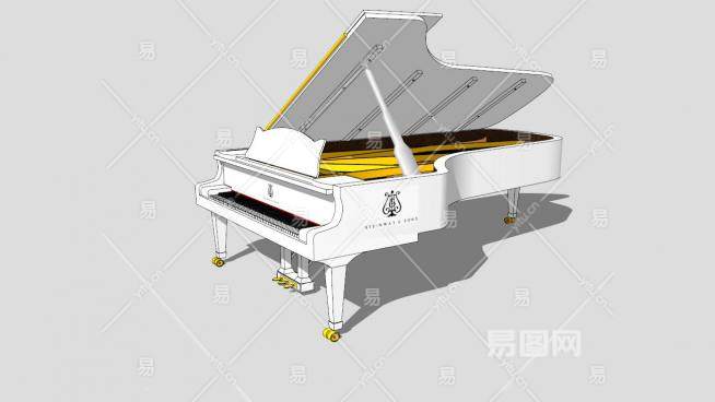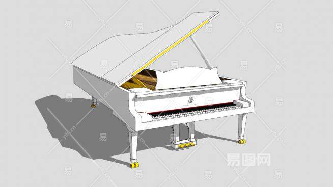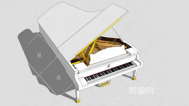 音乐器材之豪华白色小钢琴SU模型下载_sketchup草图大师SKP模型