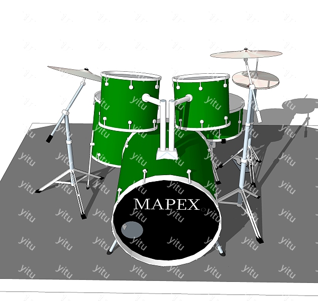 现代架子鼓SU模型,架子鼓SKB文件下载