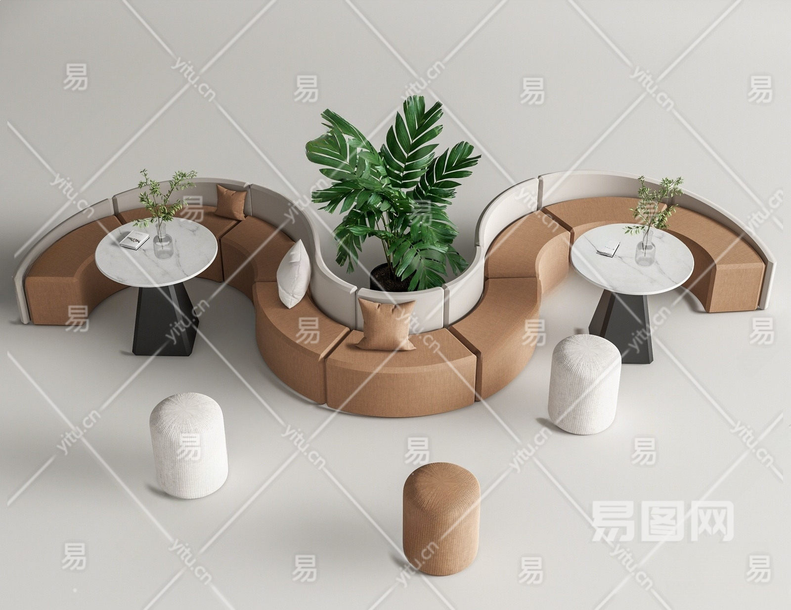 现代休息区弧形卡座沙发 异型沙发 沙发凳 休闲桌椅