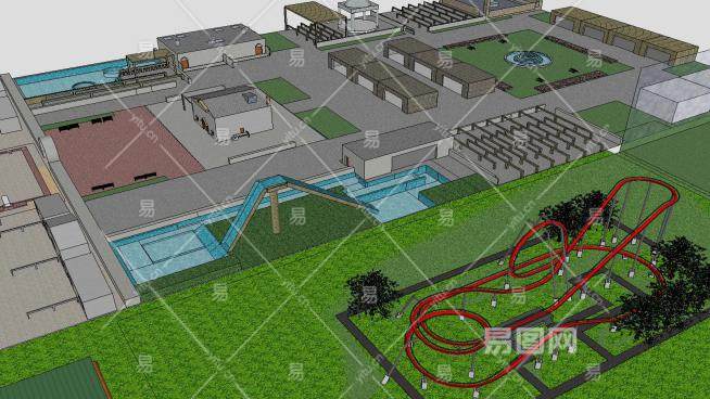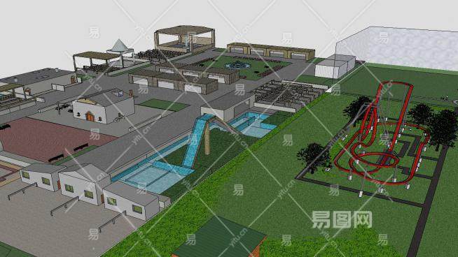 主题水上乐园SU模型下载_sketchup草图大师SKP模型