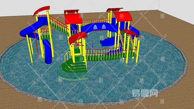 圆形泳池滑梯设备SU模型下载_sketchup草图大师SKP模型