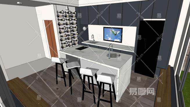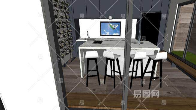现代装修吧台装饰SU模型下载_sketchup草图大师SKP模型