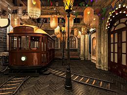 古典怀旧风密室逃脱 剧本杀 推理 恐怖密室 火车 路灯 灯笼