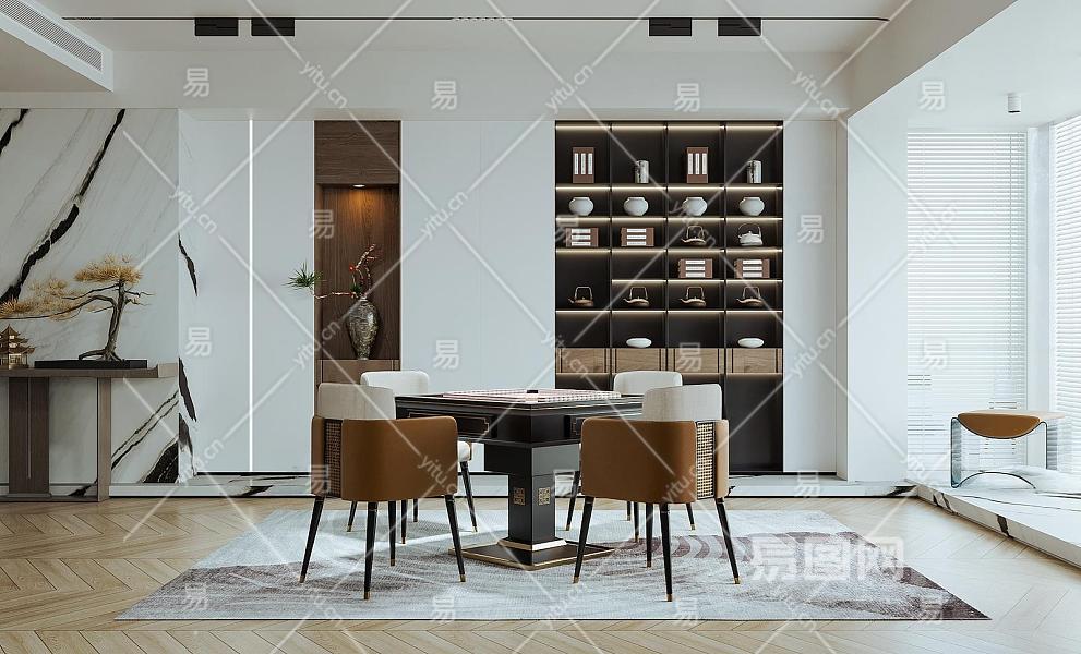 新中式棋牌室 麻将室 麻将桌椅 娱乐室 花瓶摆件
