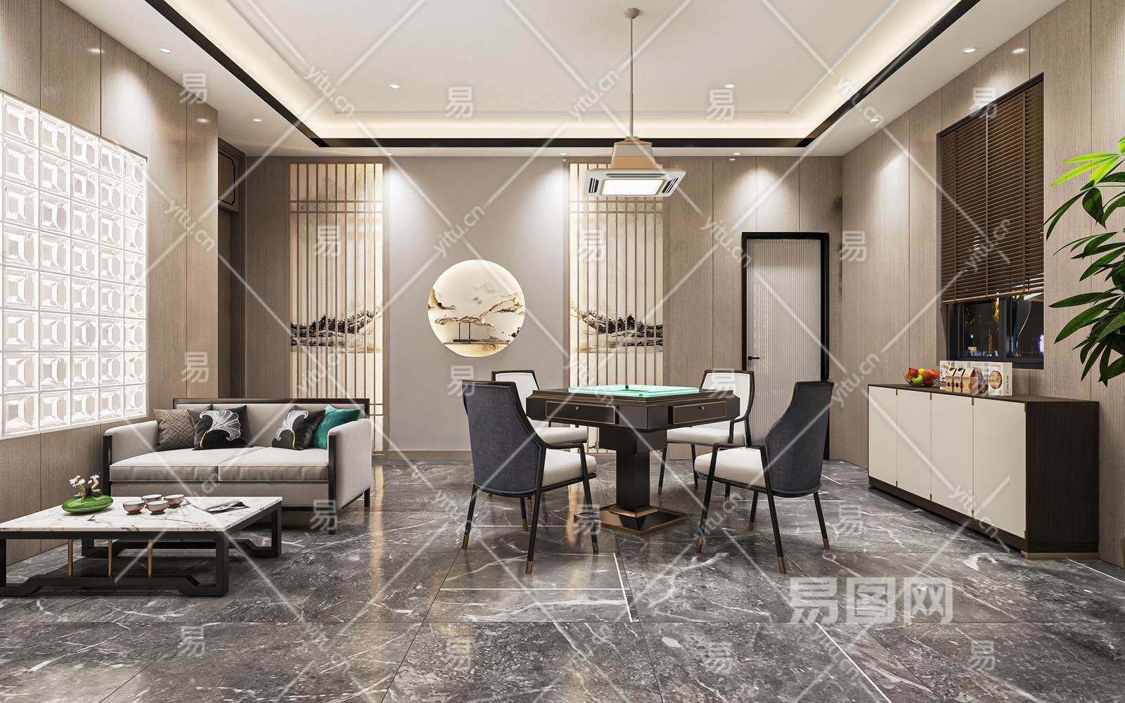 新中式棋牌室包厢 麻将室 多功能室 娱乐室 麻将桌