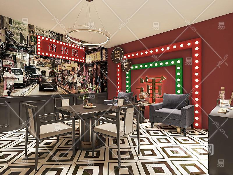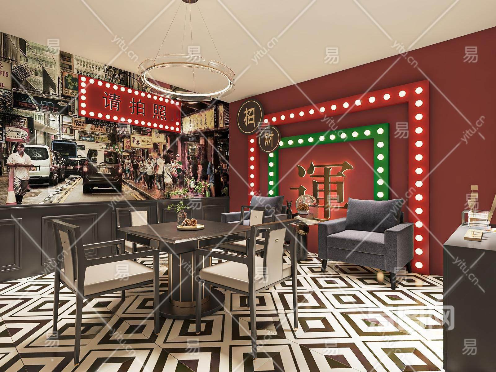 现代复古风棋牌室包厢 麻将室 多功能室 娱乐室 麻将桌