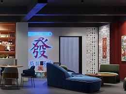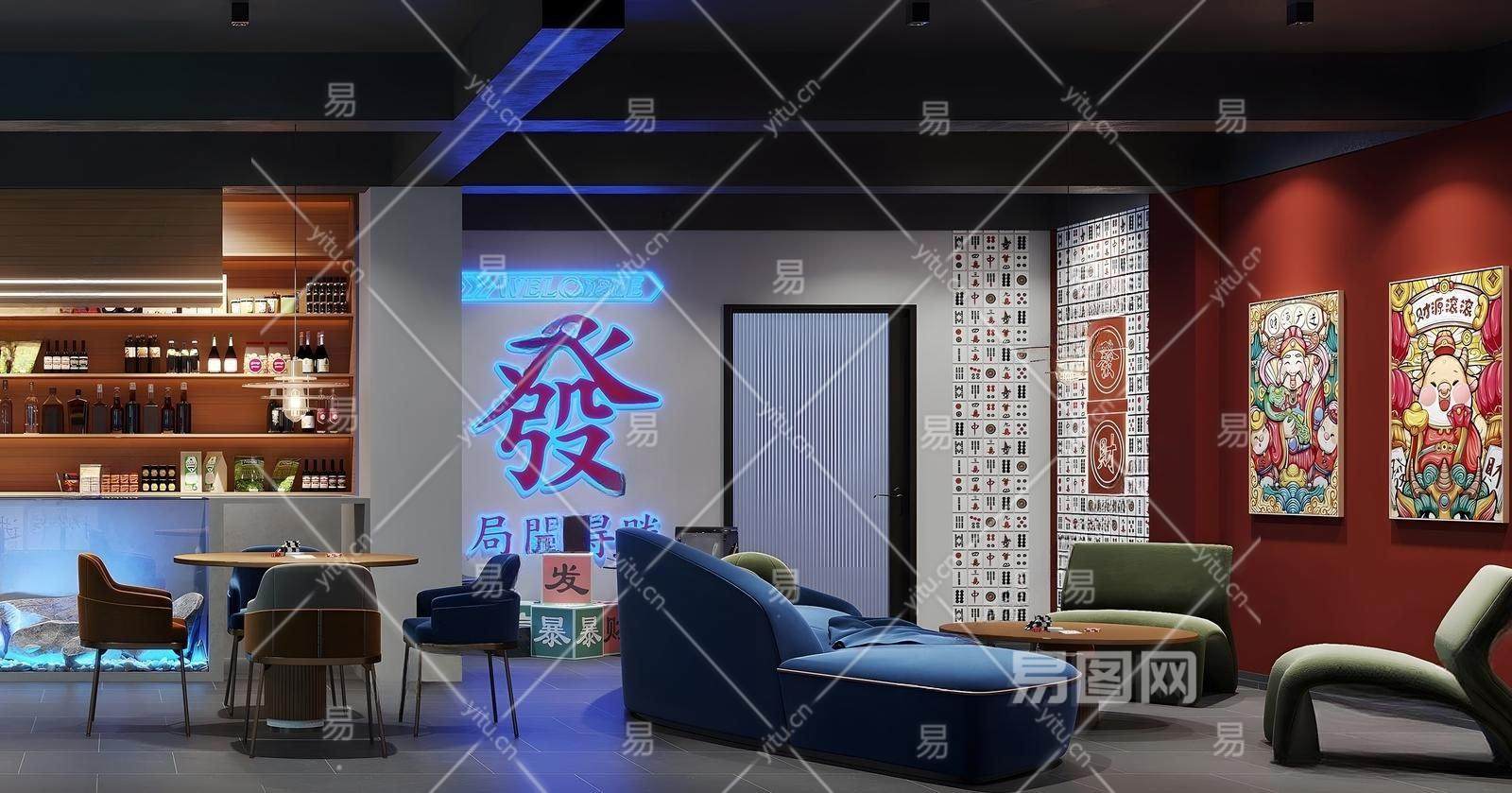 现代棋牌室 休息区 收银台