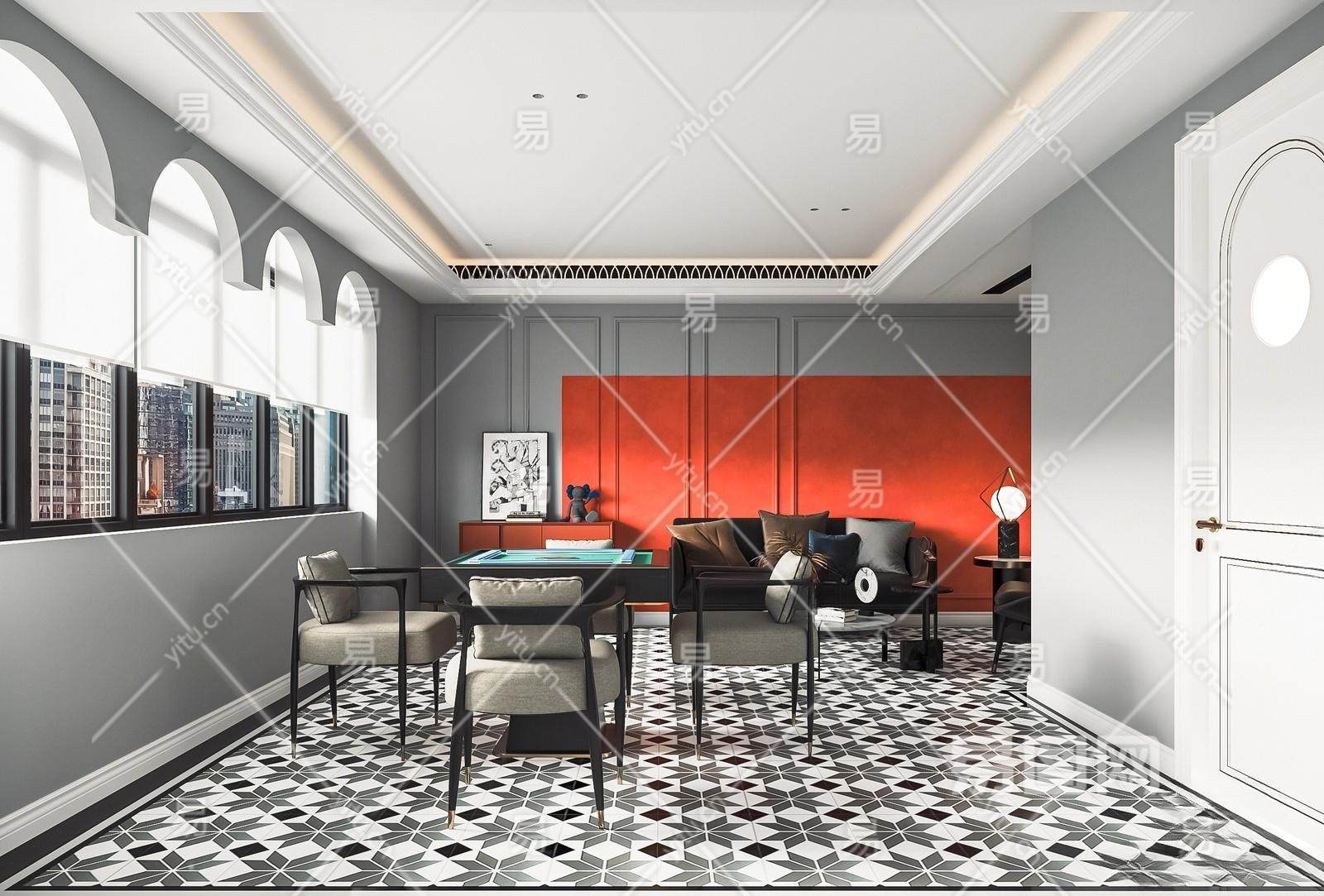 简欧棋牌室 麻将室 麻将桌组合 麻将馆