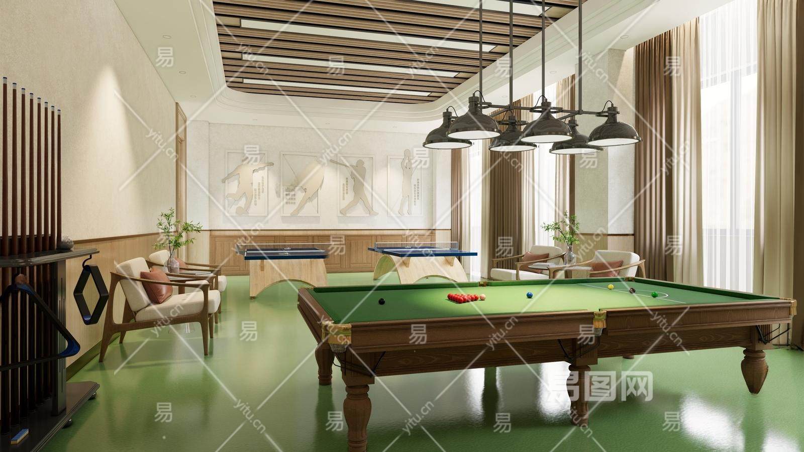 新中式台球室 乒乓球室 老年娱乐活动会所