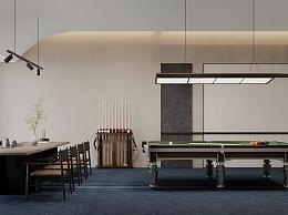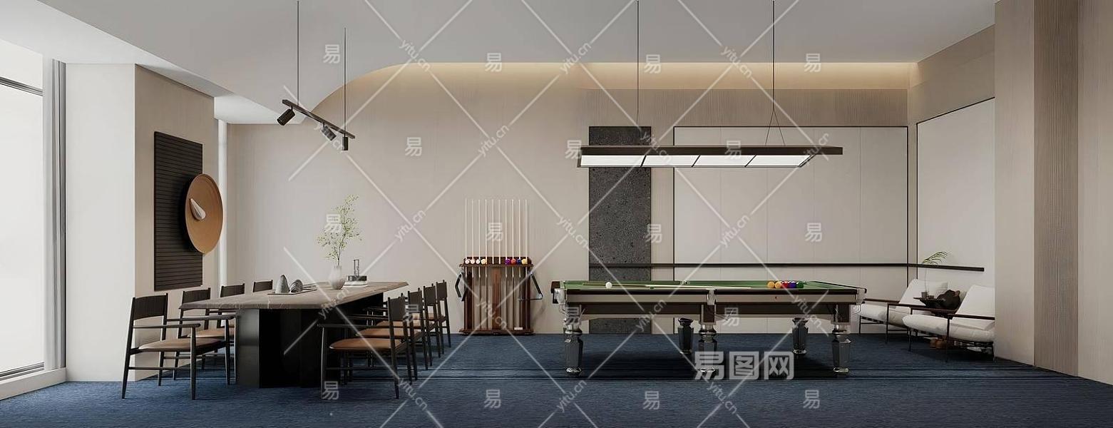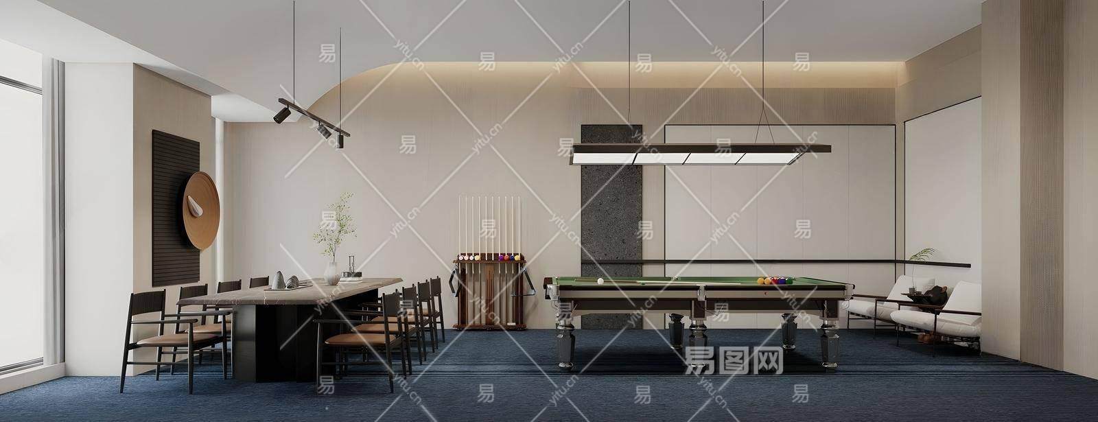 现代台球室 台球桌 桌球室 茶桌椅组合 吊灯