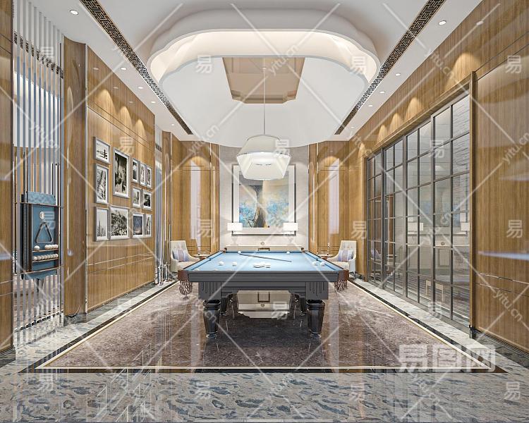 简欧台球俱乐部 台球室 桌球室 台球桌