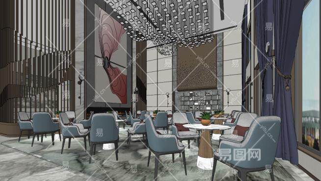 新中式现代售楼处SU模型下载_sketchup草图大师SKP模型