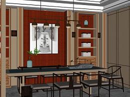 新中式茶室布景SU模型下载_sketchup草图大师SKP模型