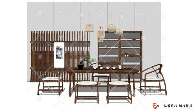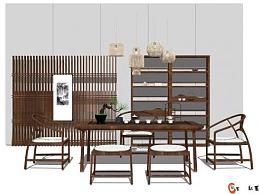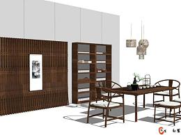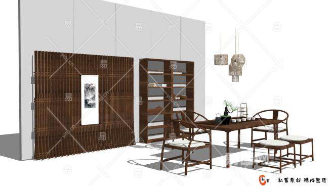 新中式茶室设计草图大师模型下载_sketchup草图大师SKP模型
