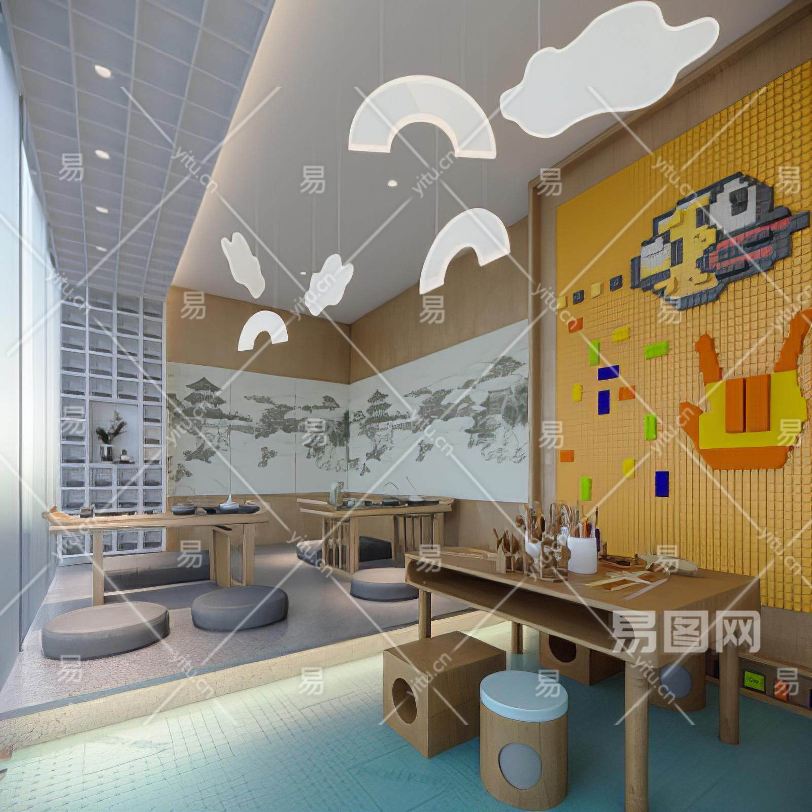 现代乐高儿童娱乐区 儿童学习桌操作台 乐高墙