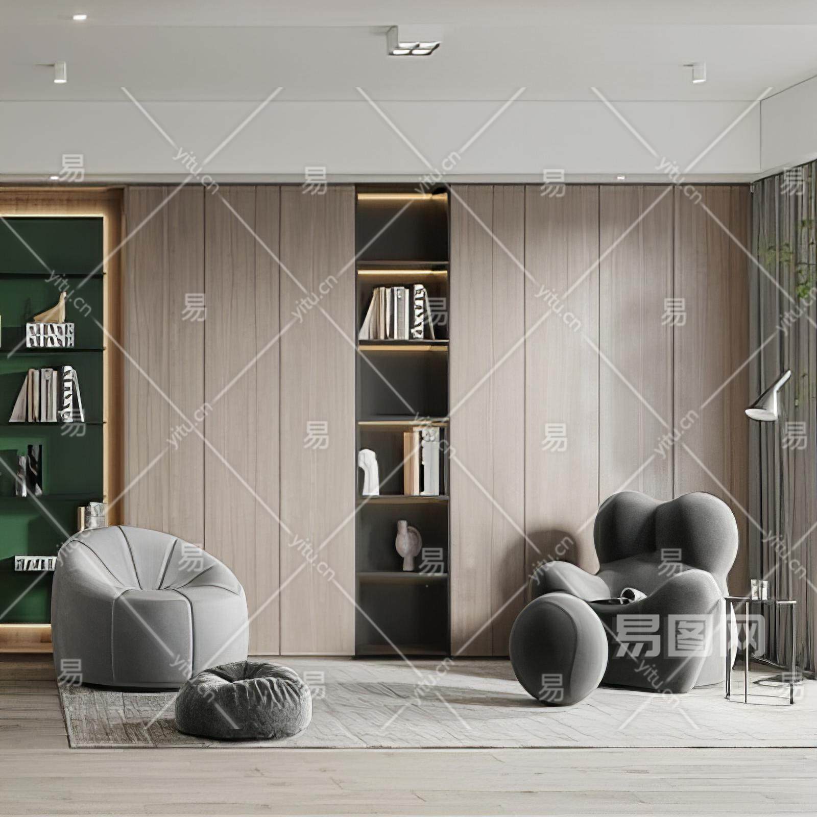 现代地下室 休闲区 妈妈的怀抱休闲椅 懒人沙发
