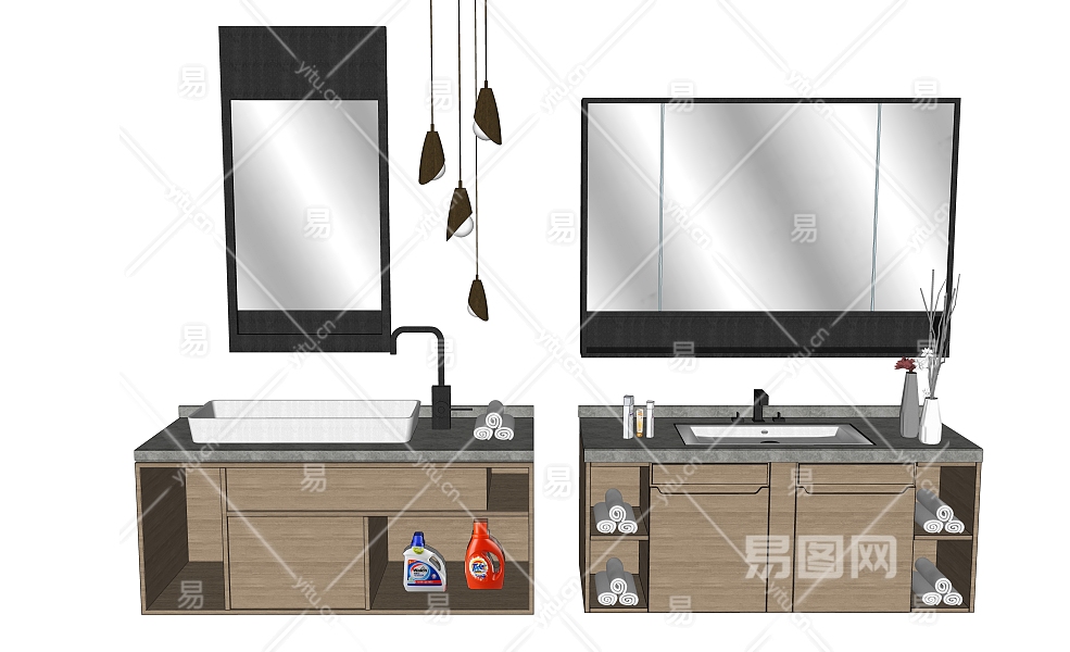 当前的位置:首页 > sketchup > sketchup模型 > 厨卫用品 > 浴室柜架 > 卫生间洗手台洗手柜组合