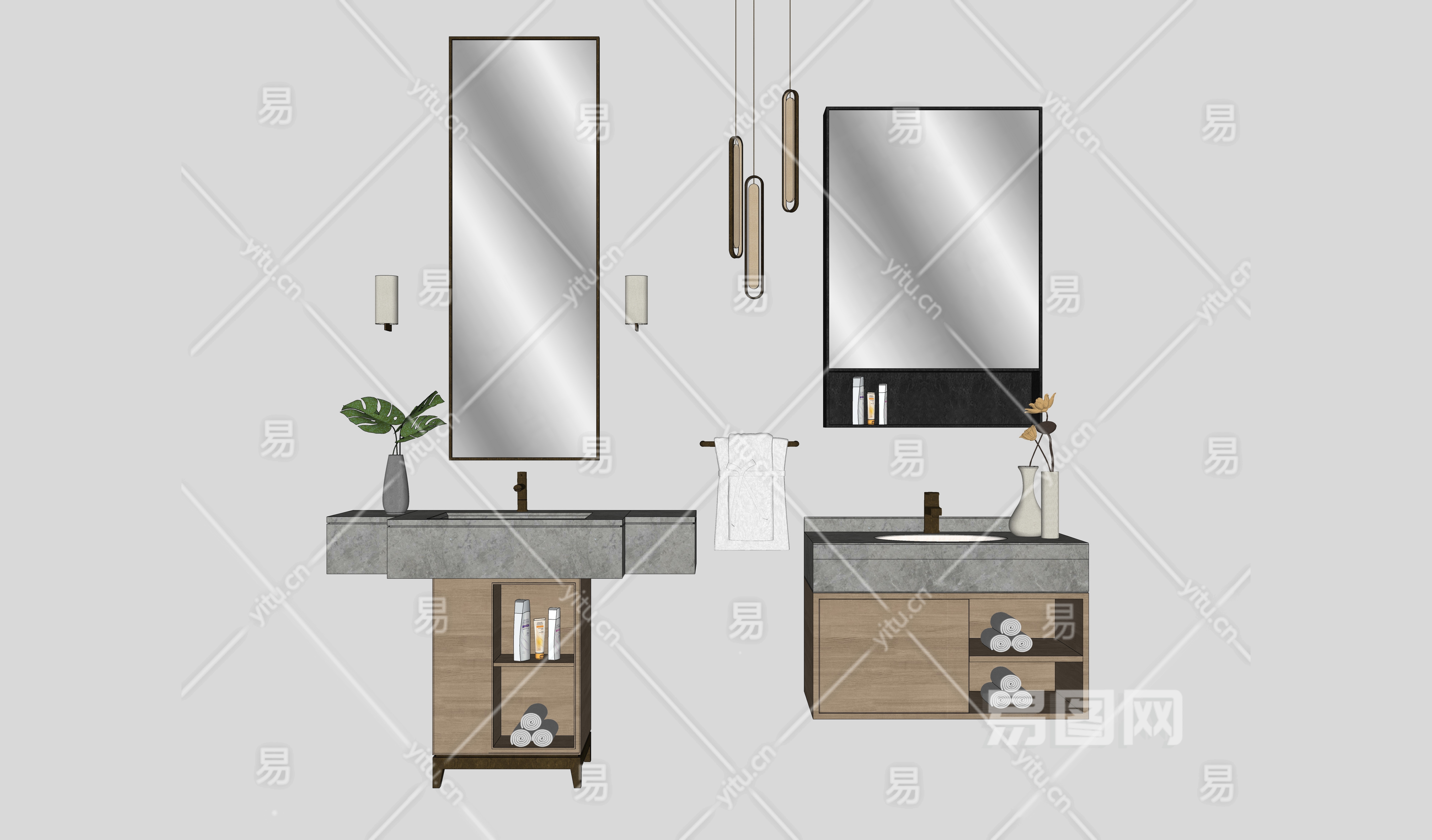 当前的位置:首页 > sketchup > sketchup模型 > 厨卫用品 > 浴室柜架 > 现代北欧浴室柜洗手台卫浴摆件组合
