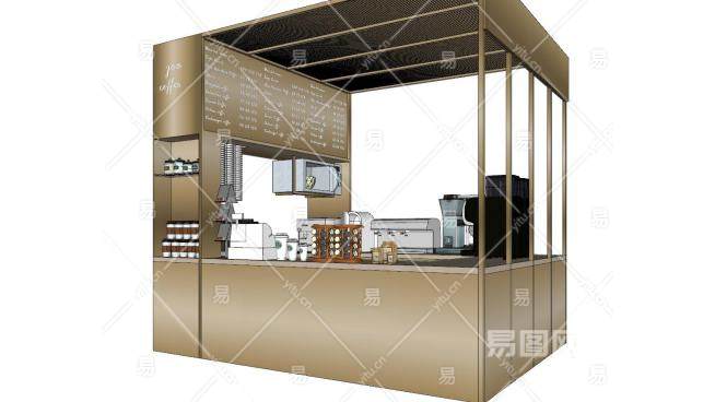 现代奶茶店工作平台SU模型下载_sketchup草图大师SKP模型