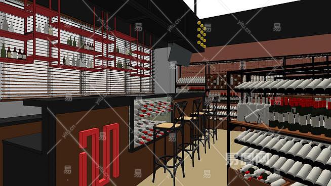 现代烟酒专卖店SU模型下载_sketchup草图大师SKP模型
