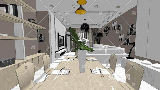 现代风格装修su模型下载_sketchup草图大师SKP模型