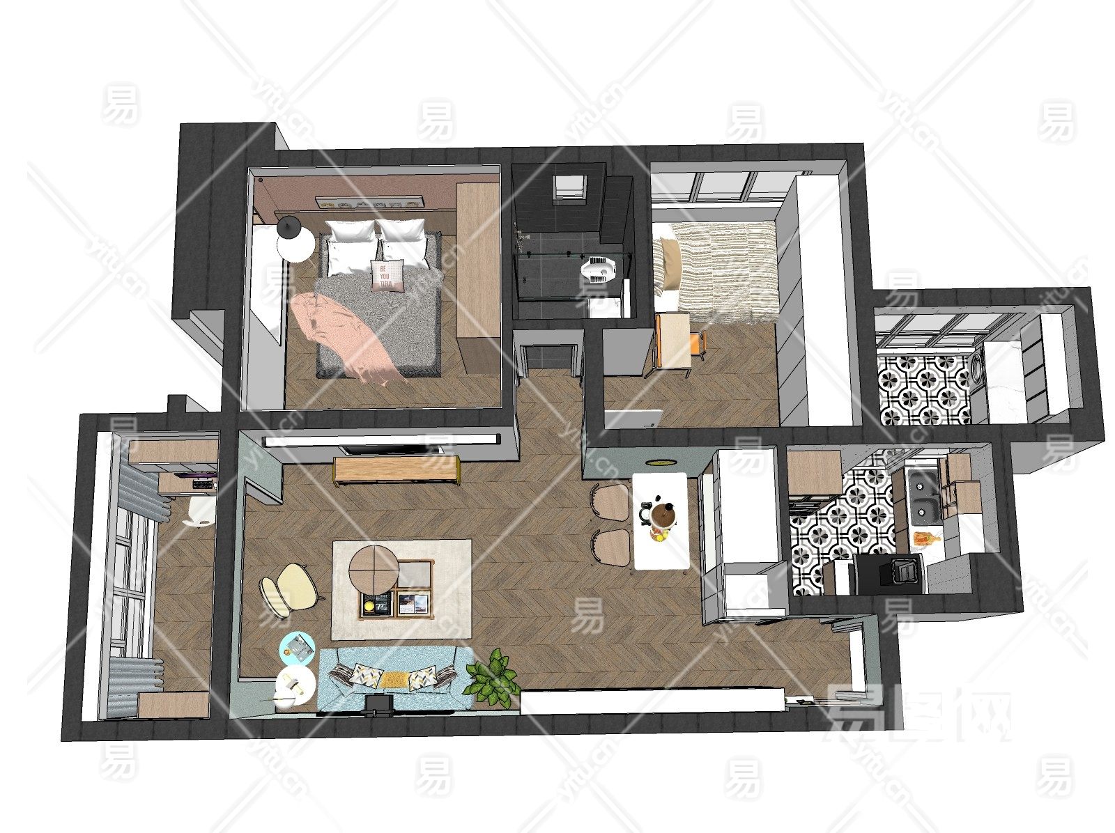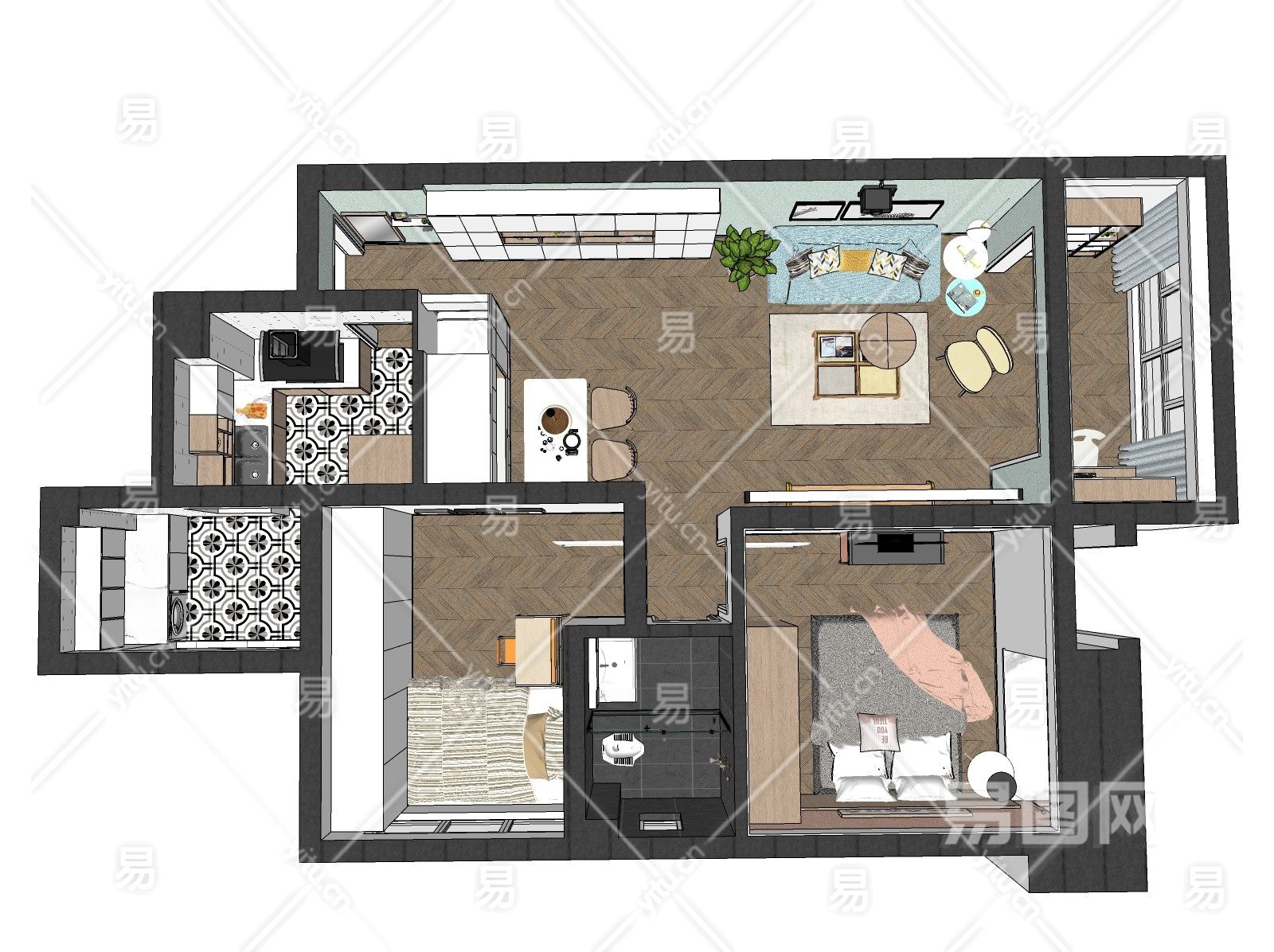 当前的位置:首页 > sketchup > sketchup模型 > 家装 > 整体方案 > 北欧家装空间家装鸟瞰