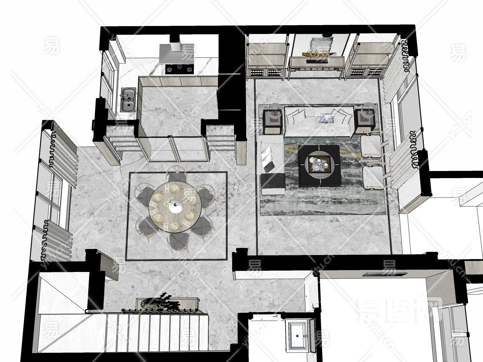 当前的位置:首页 > sketchup > sketchup模型 > 家装 > 整体方案 > 新中式家装空间家装鸟瞰