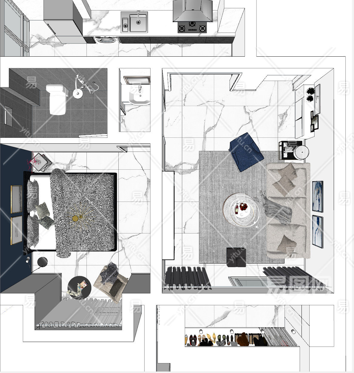 当前的位置:首页 > sketchup > sketchup模型 > 家装 > 整体方案 > 现代简约单身公寓