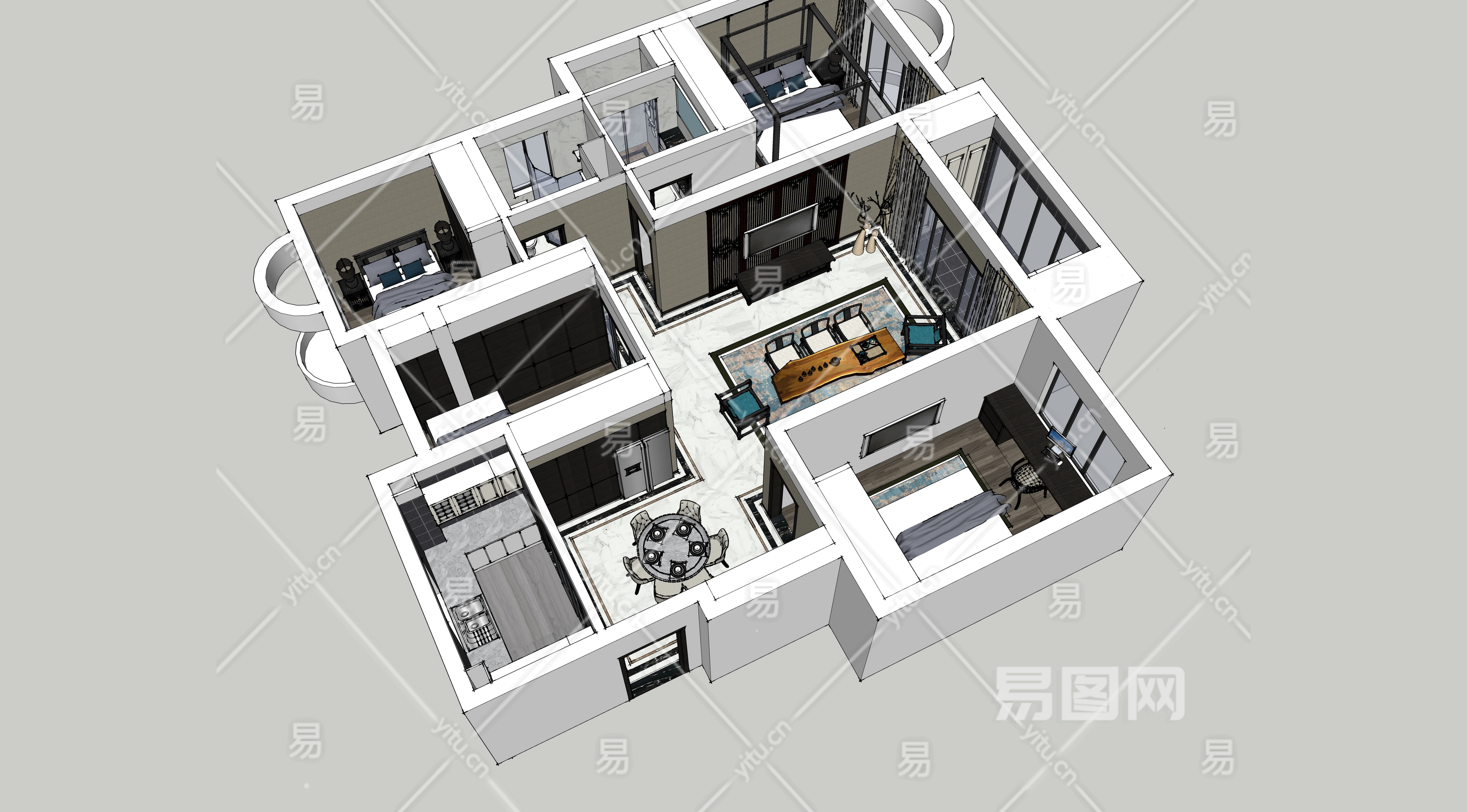 当前的位置:首页 > sketchup > sketchup模型 > 家装 > 整体方案 > 新中式客餐厅卧室厨房卫生间