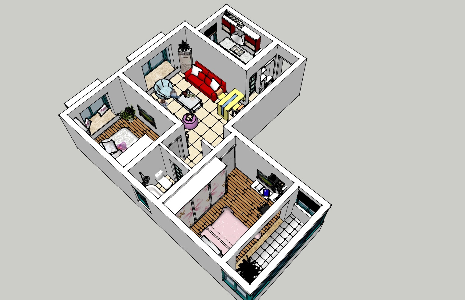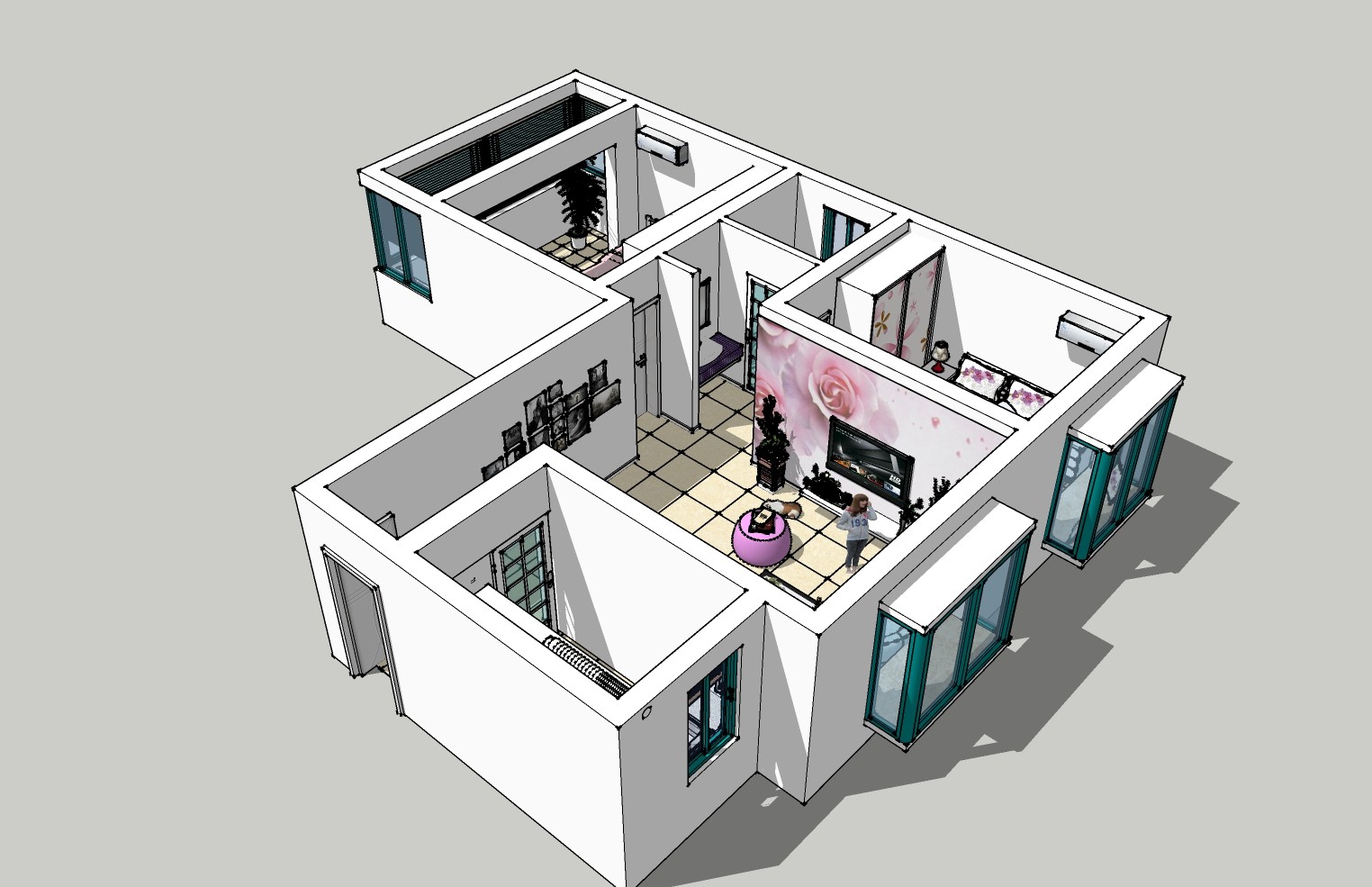 现代风格家装草图大师模型,家装sketchup模型下载
