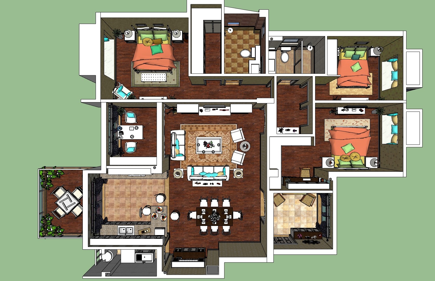 新中式风格家装草图大师模型,家装sketchup模型下载