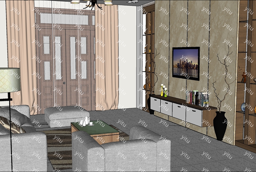 欧式风格 家装sketchup模型,家装skp模型下载