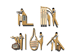 现代生态景区竹文化指示牌组合草图大师模型,指示牌skp文件下载