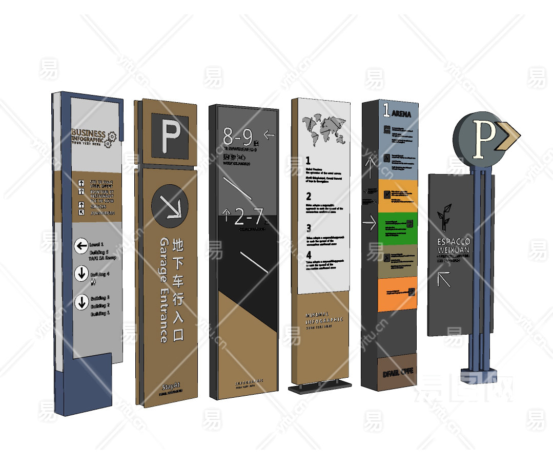 现代指示牌导视 ,引导牌, su草图模型下载
