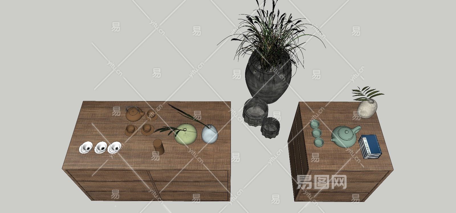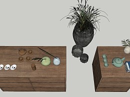 • 现代茶室茶桌椅茶柜茶具sketchup模型下载