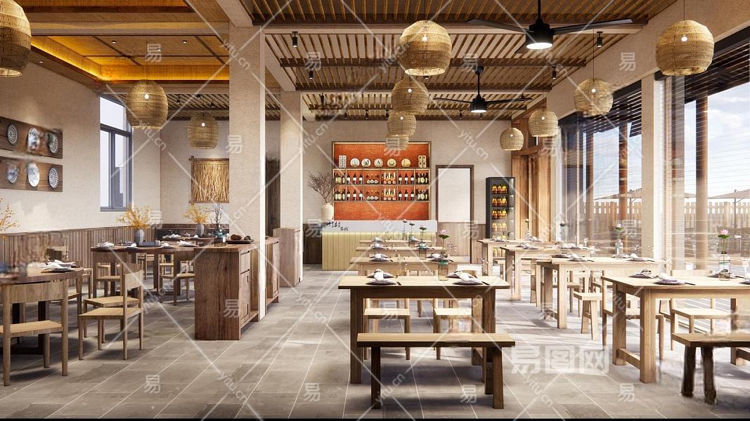 新中式餐厅 大厅 农家乐餐厅