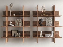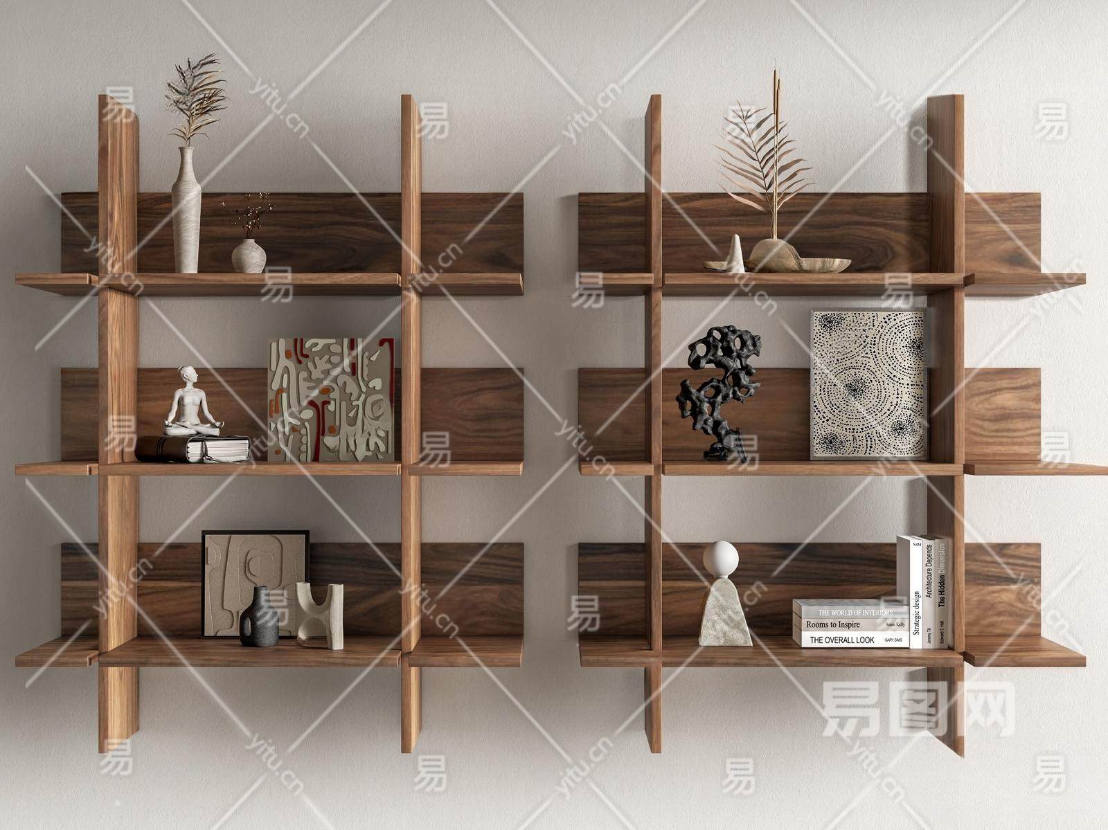 01侘寂置物架,装饰画,雕塑摆件SU模型