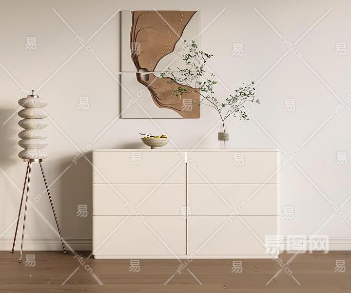 10现代奶油风装饰柜。落地灯,装饰画SU模型