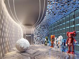 现代商场打卡厅 深渊镜 水泥造型墙 公仔 网红打卡