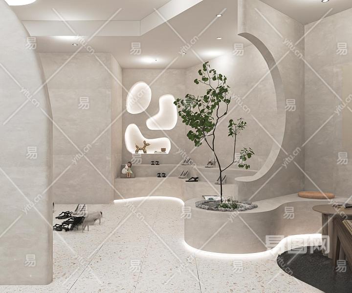 侘寂鞋店 鞋子 中岛展台 收银台 鞋子货架