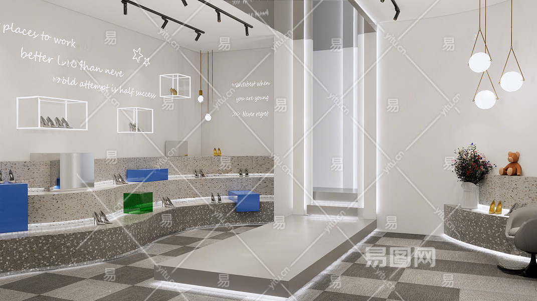 现代商场展区 鞋店 T台 霓虹灯