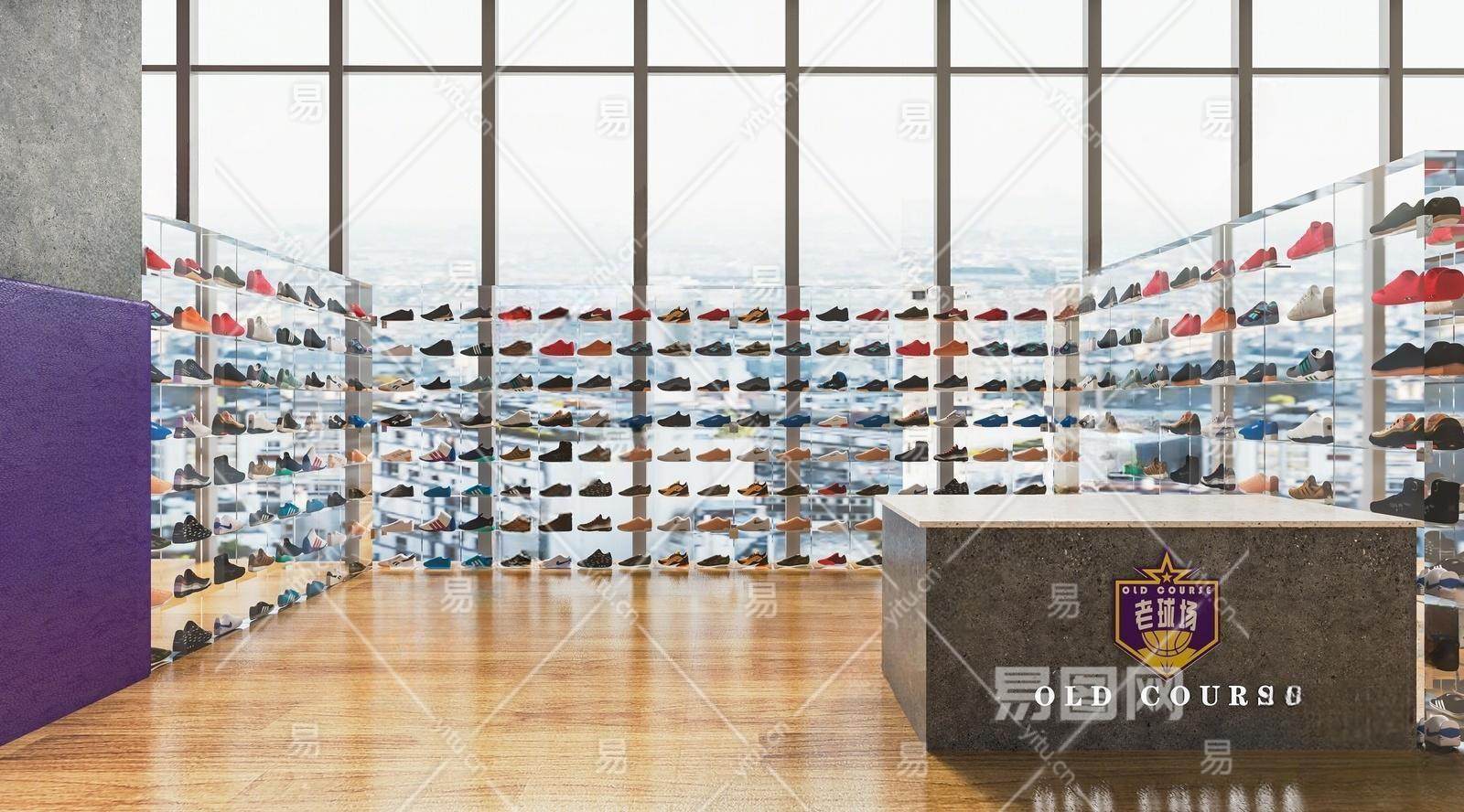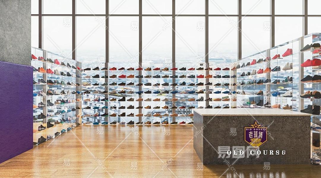 现代鞋店 运动鞋子 中岛展台 收银台 鞋子货架 美陈