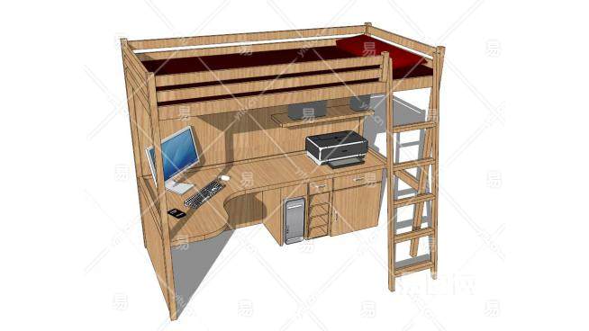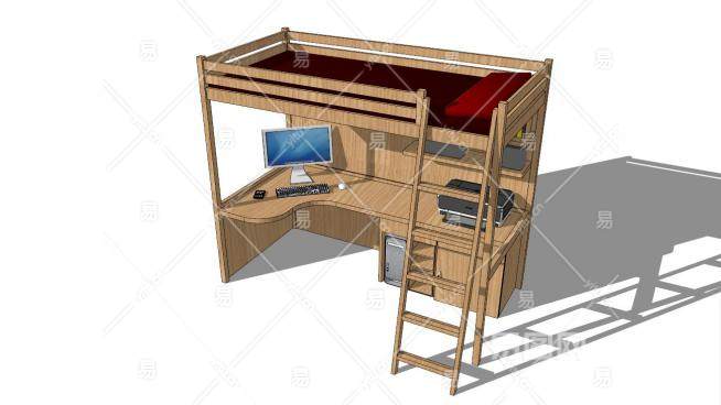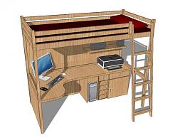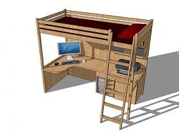 上床下书桌木质床su模型下载_sketchup草图大师SKP模型