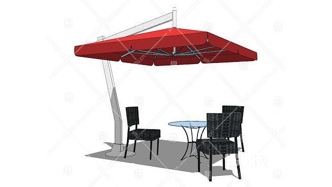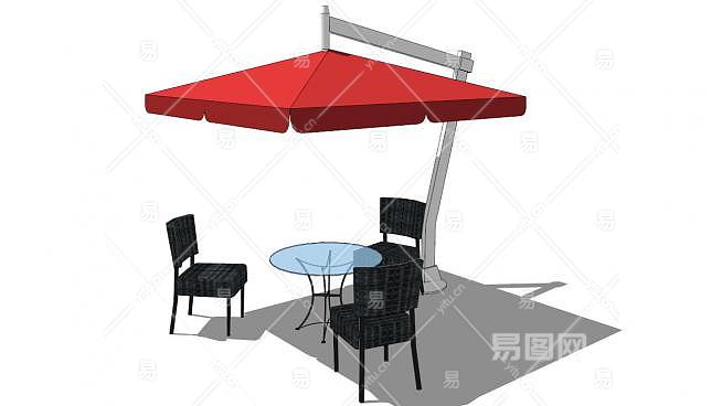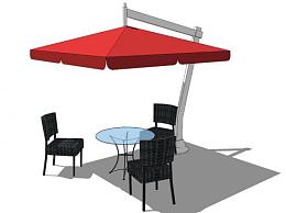 遮阳伞户外桌椅组合SU模型下载_sketchup草图大师SKP模型