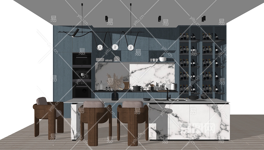 吧台餐桌椅子,吧凳,酒柜,su草图模型下载