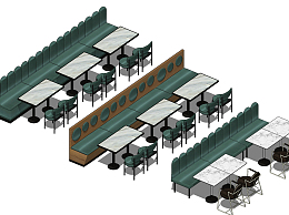 41现代轻奢皮革沙发,餐馆餐桌椅,卡座su草图模型下载