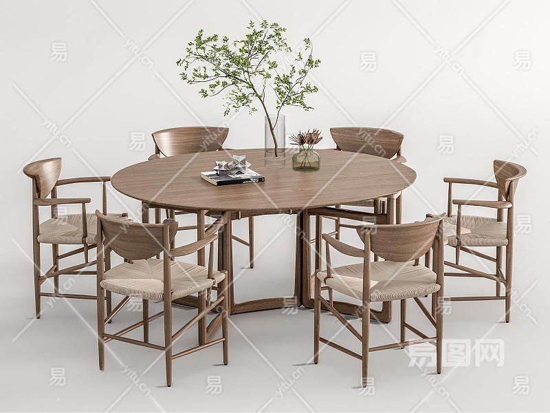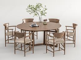 Tradition新中式圆桌餐桌椅 藤编餐椅